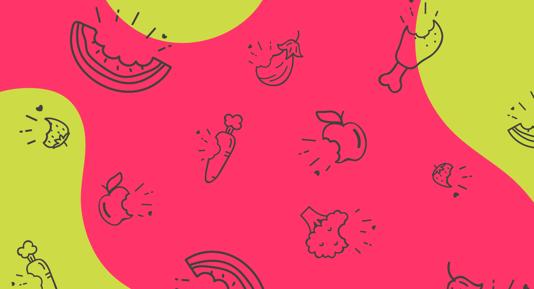 Uma série de ilustrações para compor a identidade visual da marca Amordida foi criada, retratando de forma objetiva o serviço oferecido pela empresa e transmitindo a alegria e o prazer de mordiscar um alimento natural e muito saboroso. Cenoura, couve-flor, melancia, maçã, morango e frango, são alguns dos elementos que fazem parte do cardápio visual da identidade.