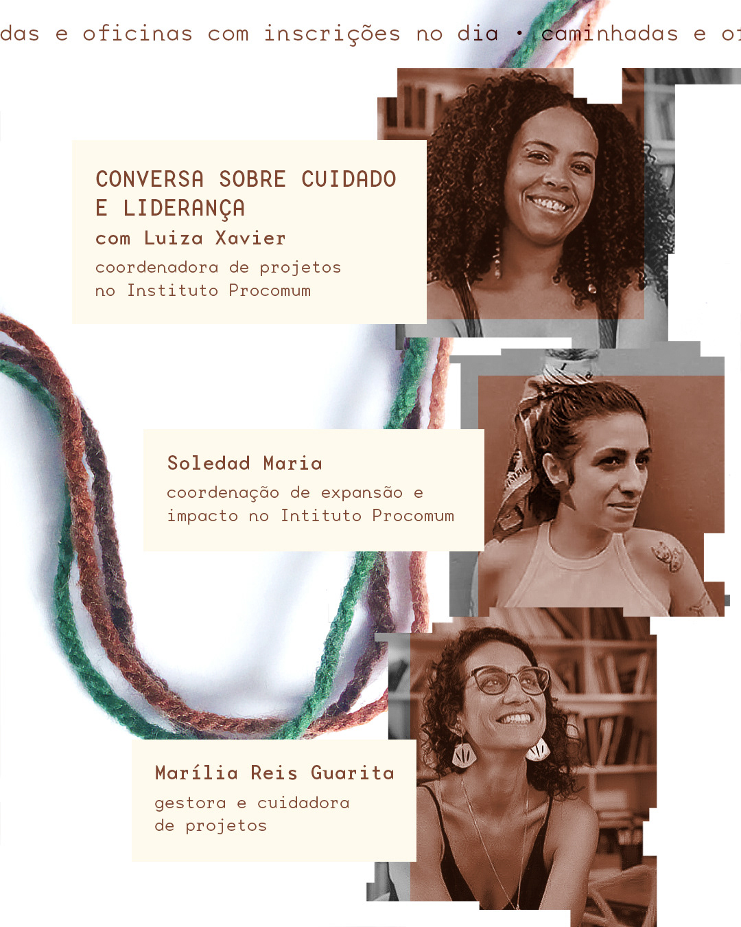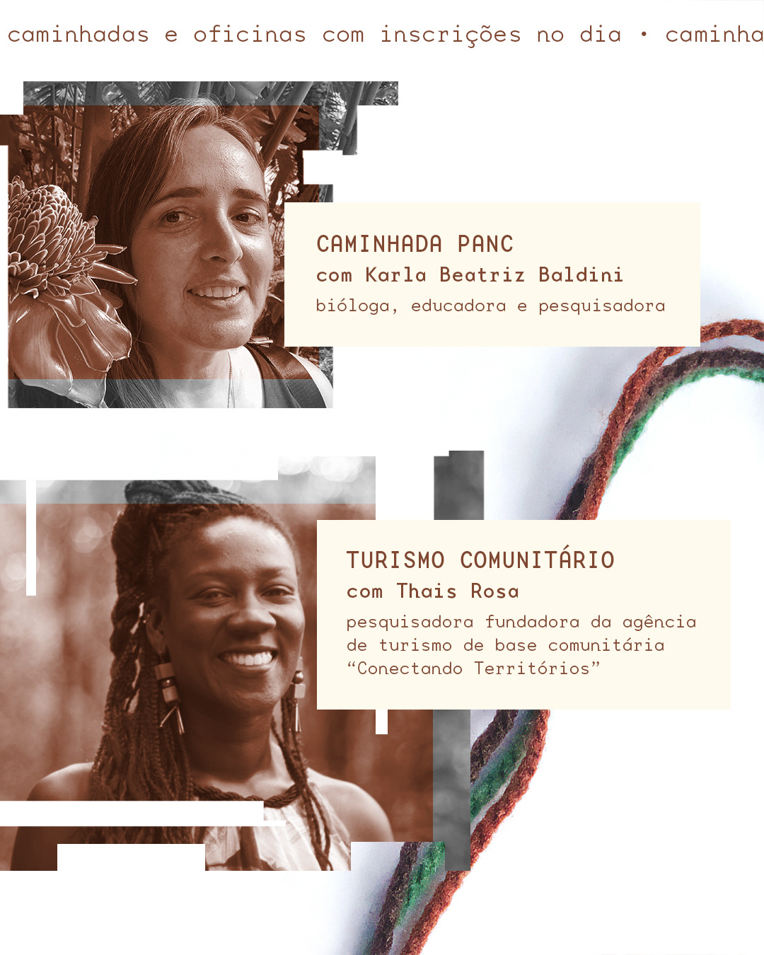 Na paleta de cores mantive o vermelho que já está presente nas outras edições e incluí tons terrosos. O desenho do logotipo, criado nas últimas edições pela designer Karina Duarte, também foi mantido, refinando apenas alguns traços para uma melhor visibilidade nas versões em negativo.